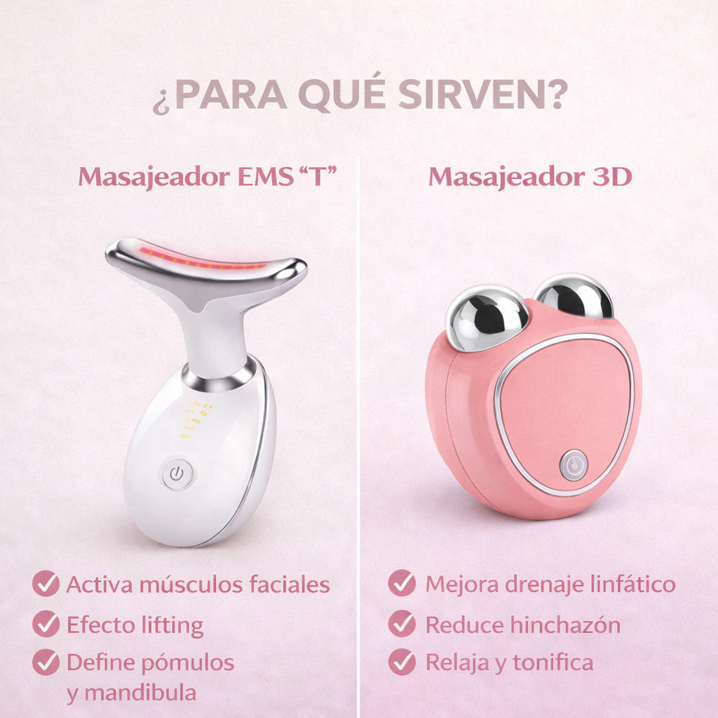 ¿Qué diferencia hay entre el Masajeador EMS “T” y el Masajeador 3D Microcorriente? 🔽